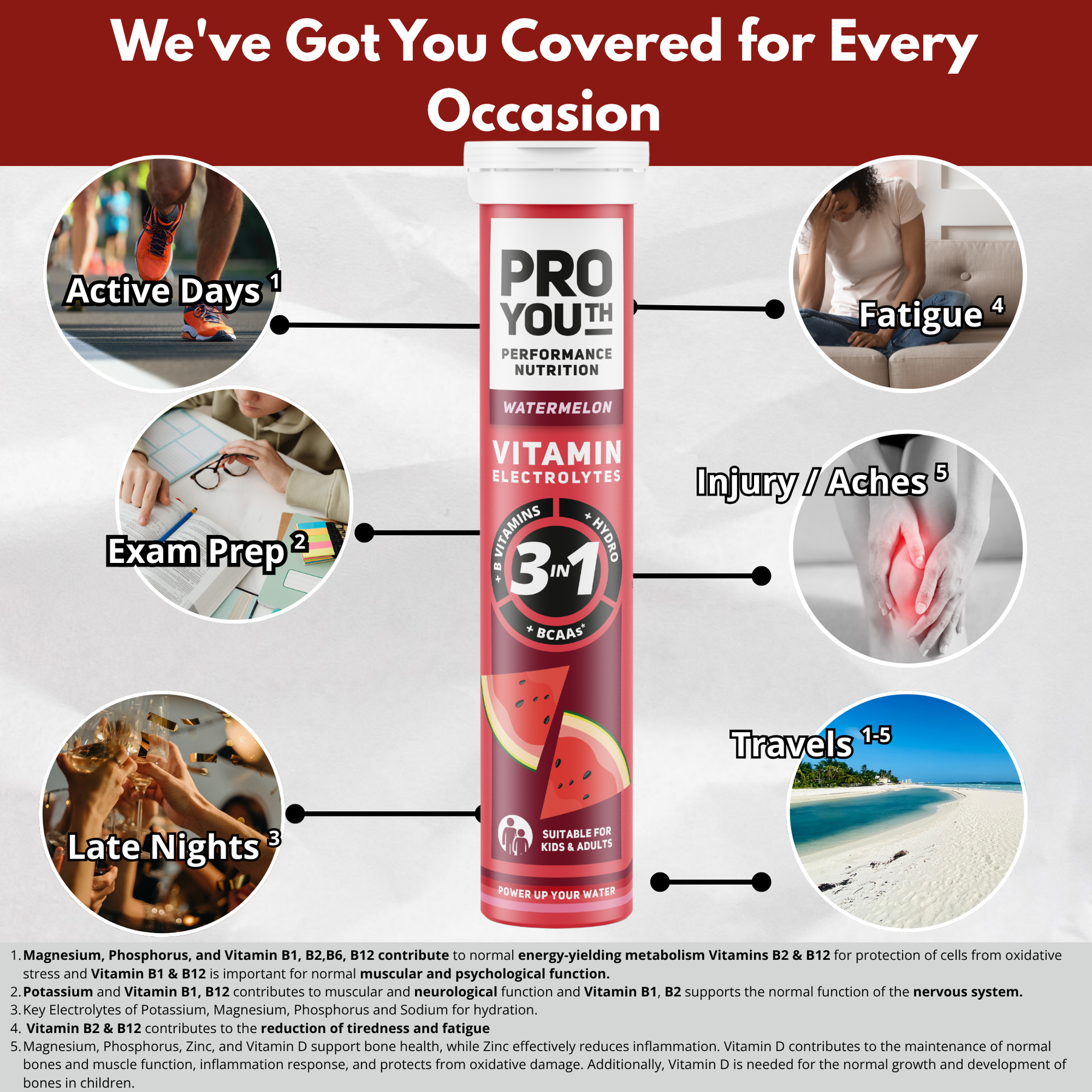3 in 1 Vitamin Electrolytes with BCAAs - Watermelon - 20 Tablets
